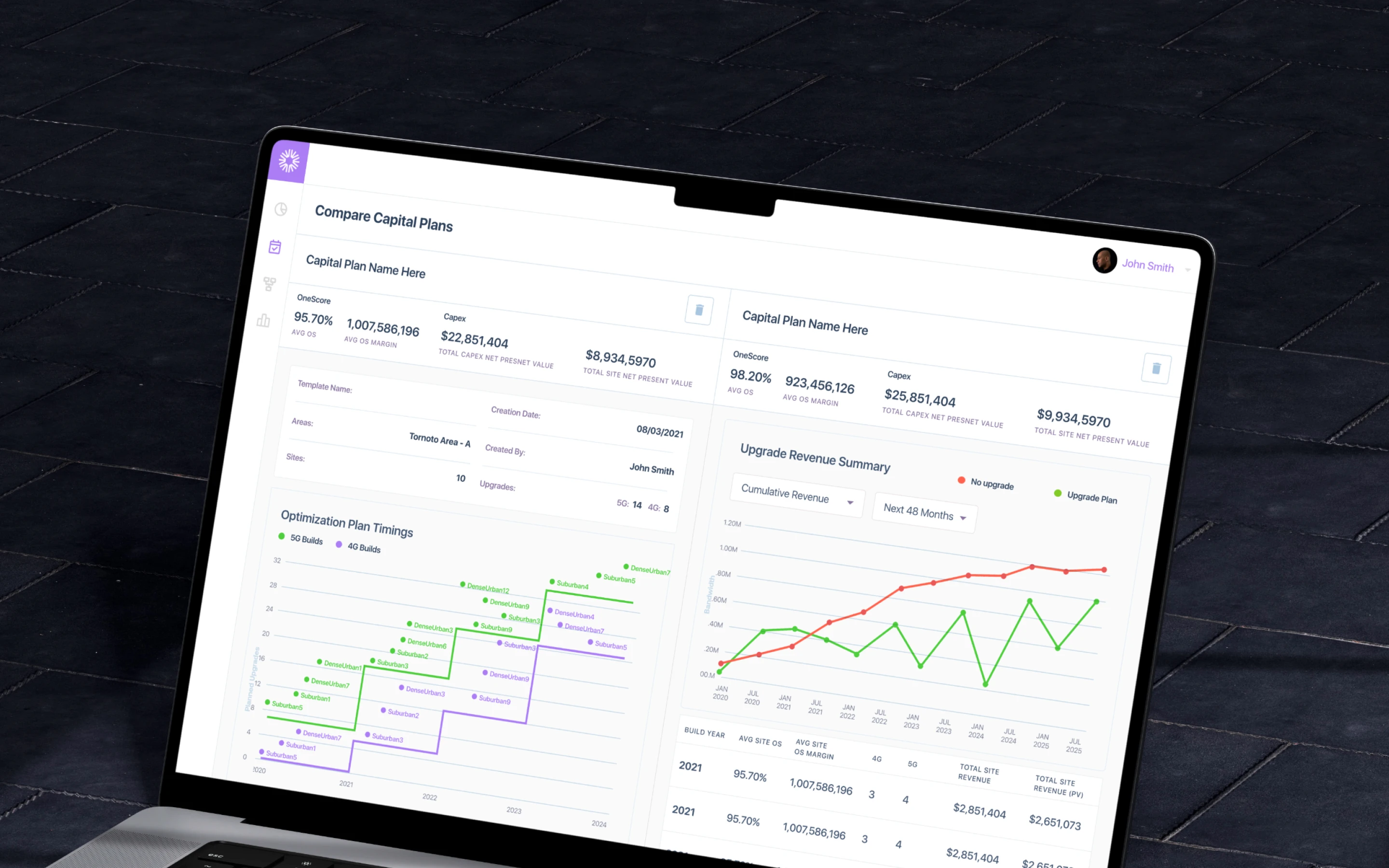 Scenario Comparisons: Side-by-side site analysis with configurable triggers and thresholds, eliminating spreadsheet toggling.