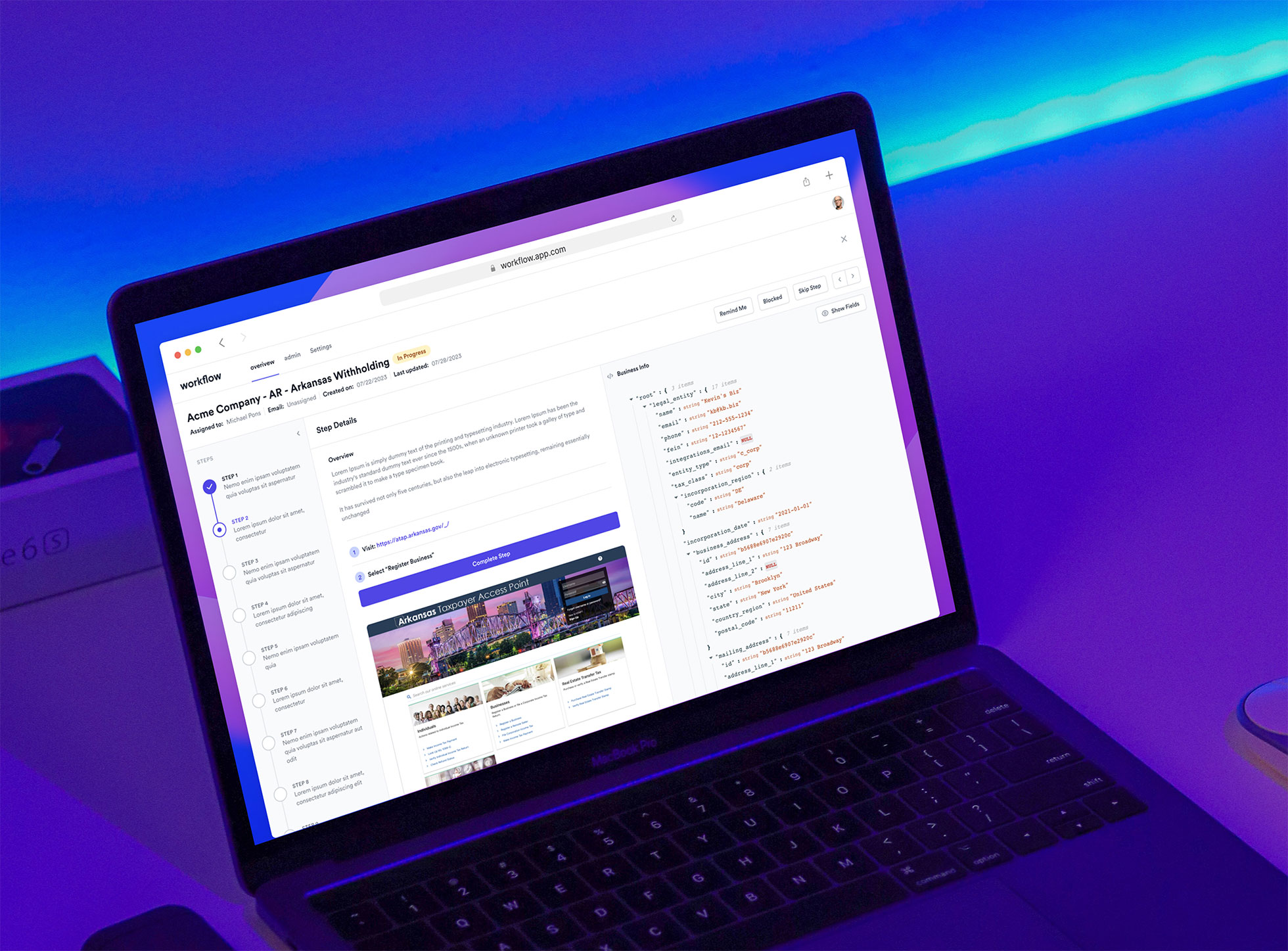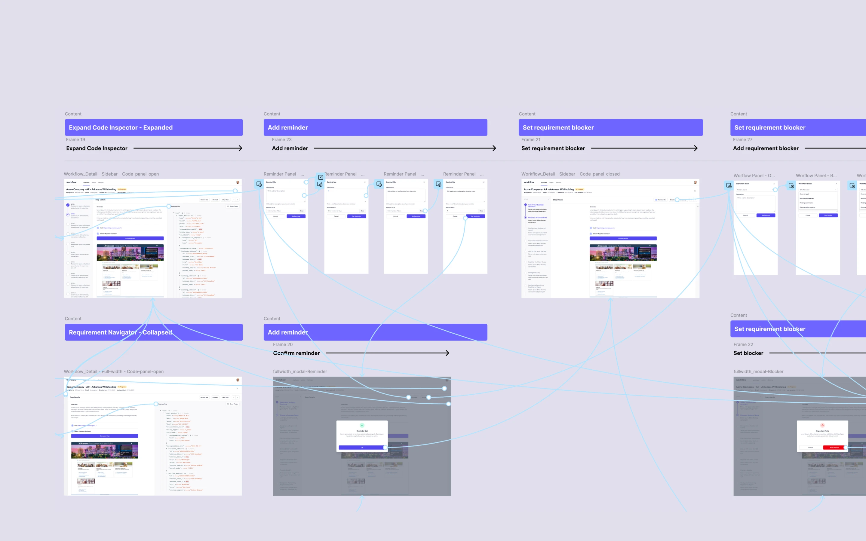 Exposed Data as a UI: Engineers need to orient themselves across thousands of requirements spanning all 53 states. This zone mirrors Mosey's customer-facing step sequence putting the compliance journey in lockstep with a source of truth we could rely on.